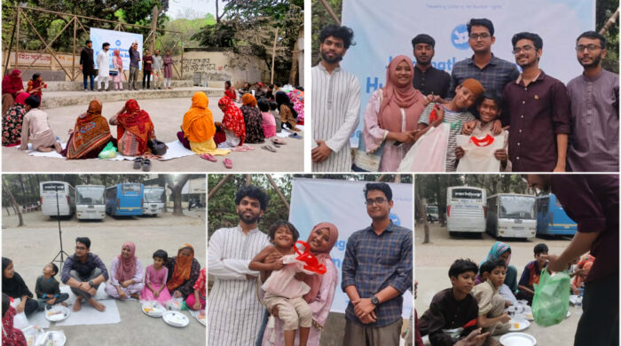 পবিত্র মাহে রমজান উপলক্ষে সুবিধাবঞ্চিত পথশিশু ও ছিন্নমূল মানুষদের নিয়ে ইফতার ও ঈদ উপহার বিতরণের এক মানবিক উদ্যোগ গ্রহণ করেছে জগন্নাথ বিশ্ববিদ্যালয় (জবি) হিউম্যান রাইটস সোসাইটি। ‘প্রজেক্ট স্মাইল ২০২৬’-এর আওতায়
